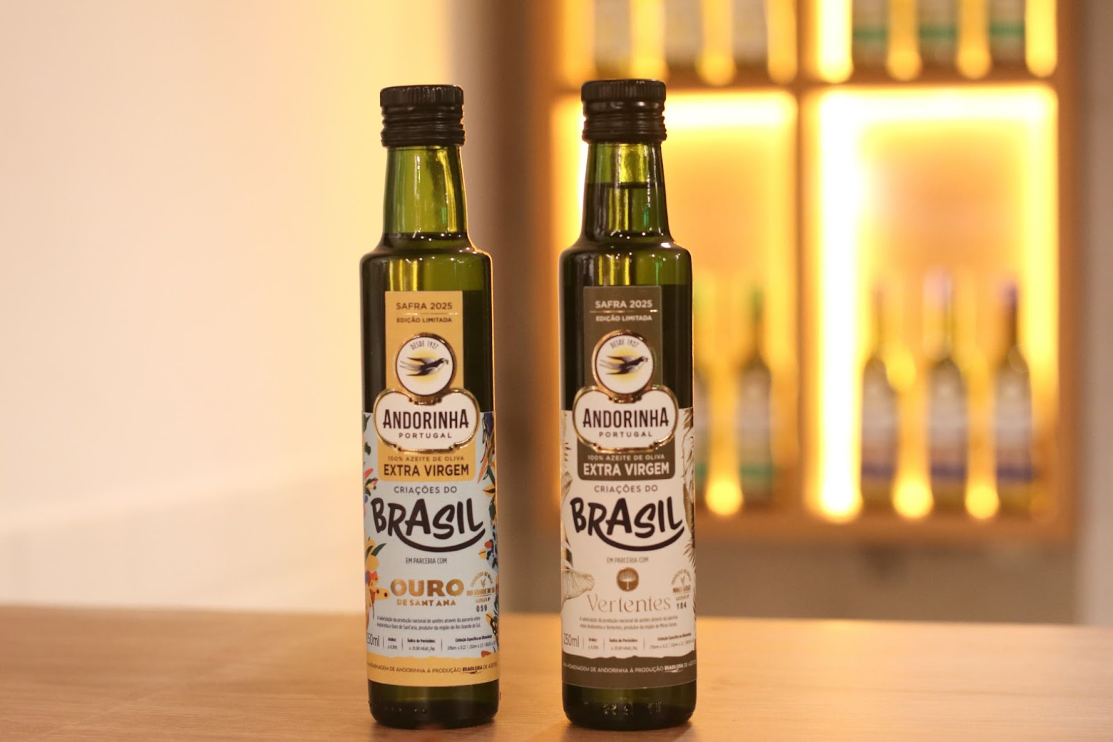 Os azeites extra virgens são resultado de uma colaboração com dois produtores locais: Ouro de Sant’Ana, de Santana do Livramento (RS), presente desde a primeira edição (2019), e Vertentes, parceiro novo de Andrelândia (MG). Com perfis totalmente distintos, os azeites reforçam a proposta da marca de aproximar a excelência da tradição portuguesa de azeites à riqueza e diversidade das regiões produtoras brasileiras.