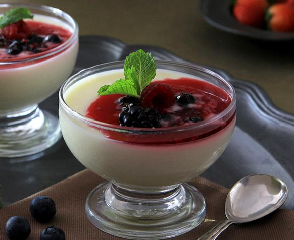 SOBREMESA: PANNA COTTA COM FRUTAS VERMELHAS