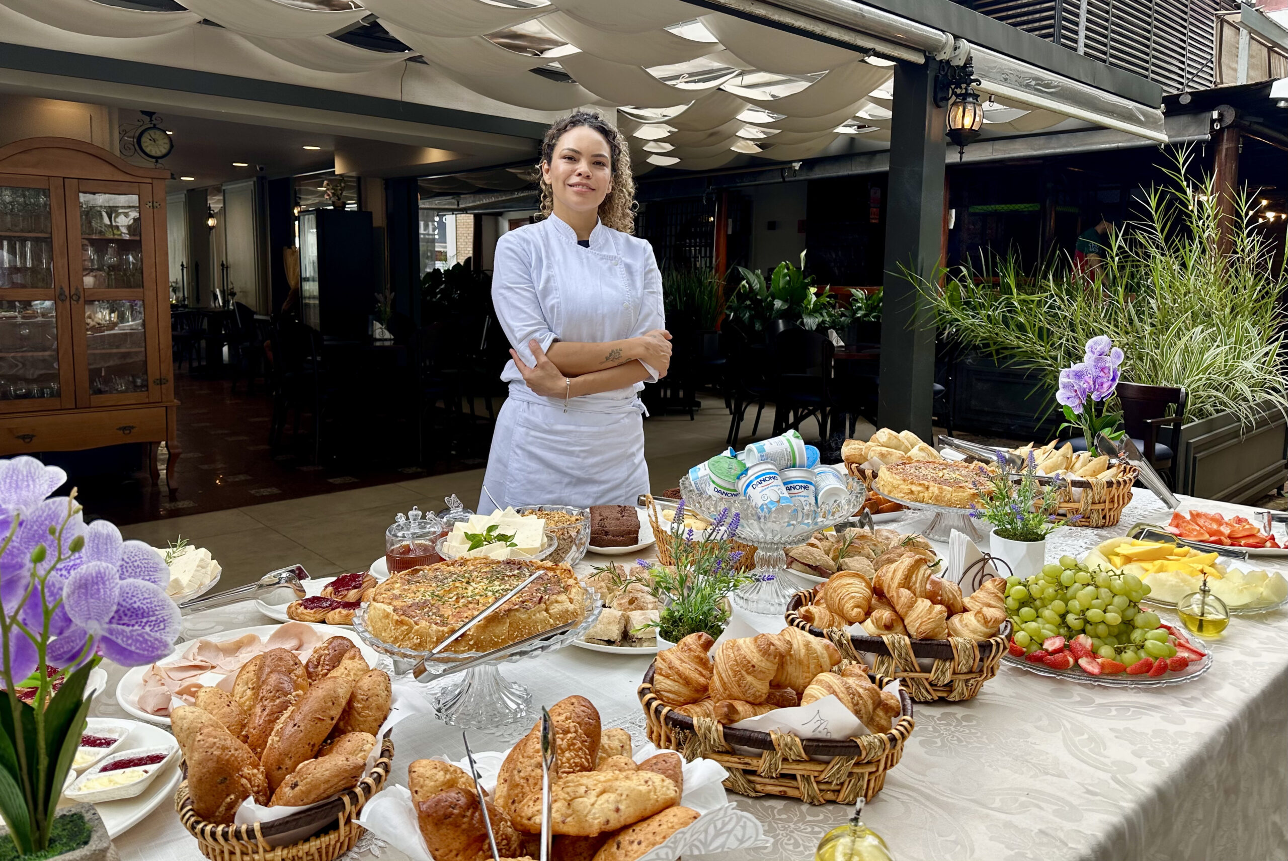 A proposta reúne uma mesa farta com pães artesanais, croissants, ovos mexidos, quiches, pão de queijo, pão de calabresa, misto quente, sanduíche de rosbife no pão ciabatta e toast de gorgonzola, reforçando a identidade gastronômica da casa ao unir técnica francesa e sabores acolhedores, além de queijos e frios, bolos frescos, frutas selecionadas, chá gelado, café Illy e sucos naturais fazem parte do serviço à vontade por R$ 69,90 por pessoa.