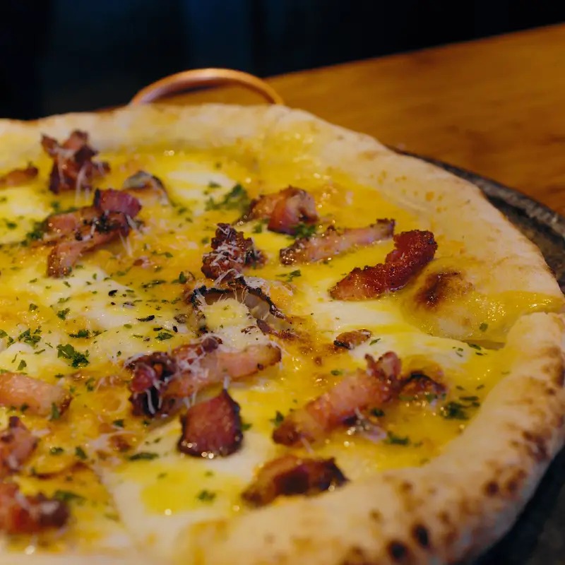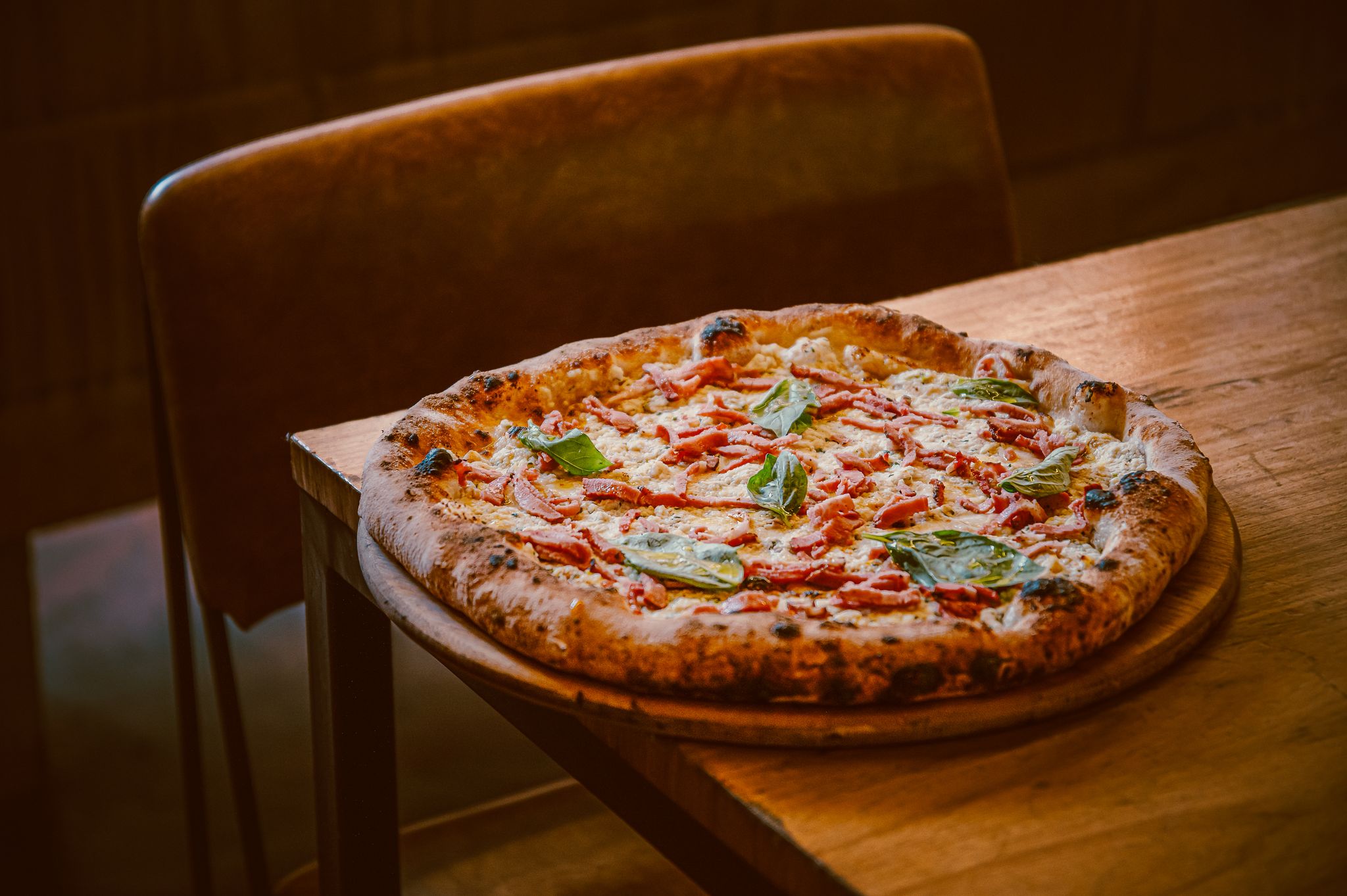 Na difícil tarefa de escolher apenas duas, ela aponta: “Fico com a pizza do Modesto Pretensiosamente, cuja massa é um evento por si só, e a da Grano & Oliva, que é sempre uma aposta certeira”, ressalta. Entre os sabores preferidos, ela destaca a Bacon ao Pesto, com massa de longa fermentação (48h+), pesto de manjericão, muçarela, bacon defumado, finalizada com parmesão, redução de balsâmico e ervas (R$ 96,30), do Modesto. E a Carbonara da Grano, também com massa 48h, molho carbonara cremoso, muçarela, guanciale, parmesão e pimenta-do-reino (R$ 96).