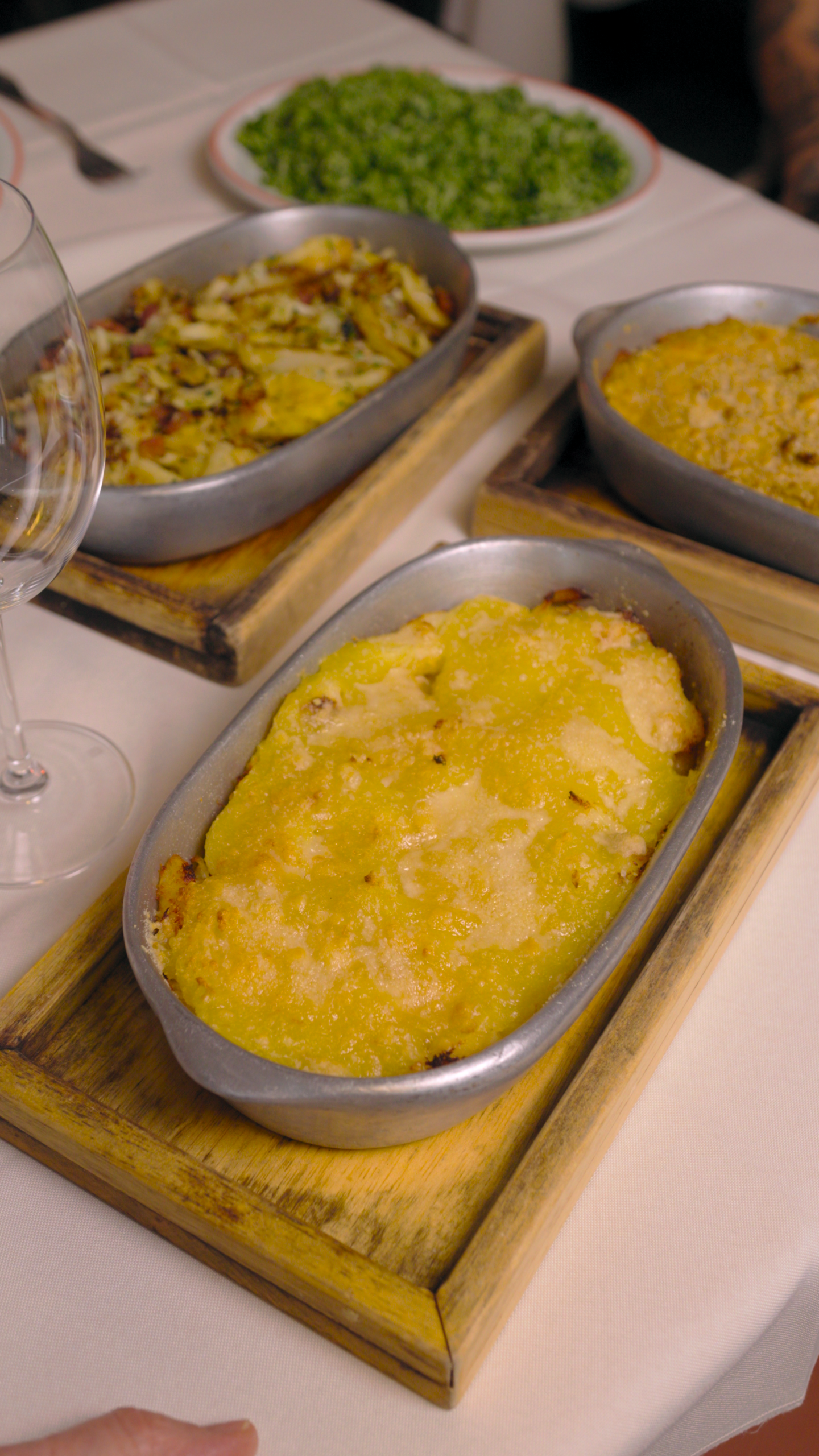 Receita tradicional portuguesa preparada com nata fresca, batatas e gratinada com parmesão. Conforto puro em cada garfada.