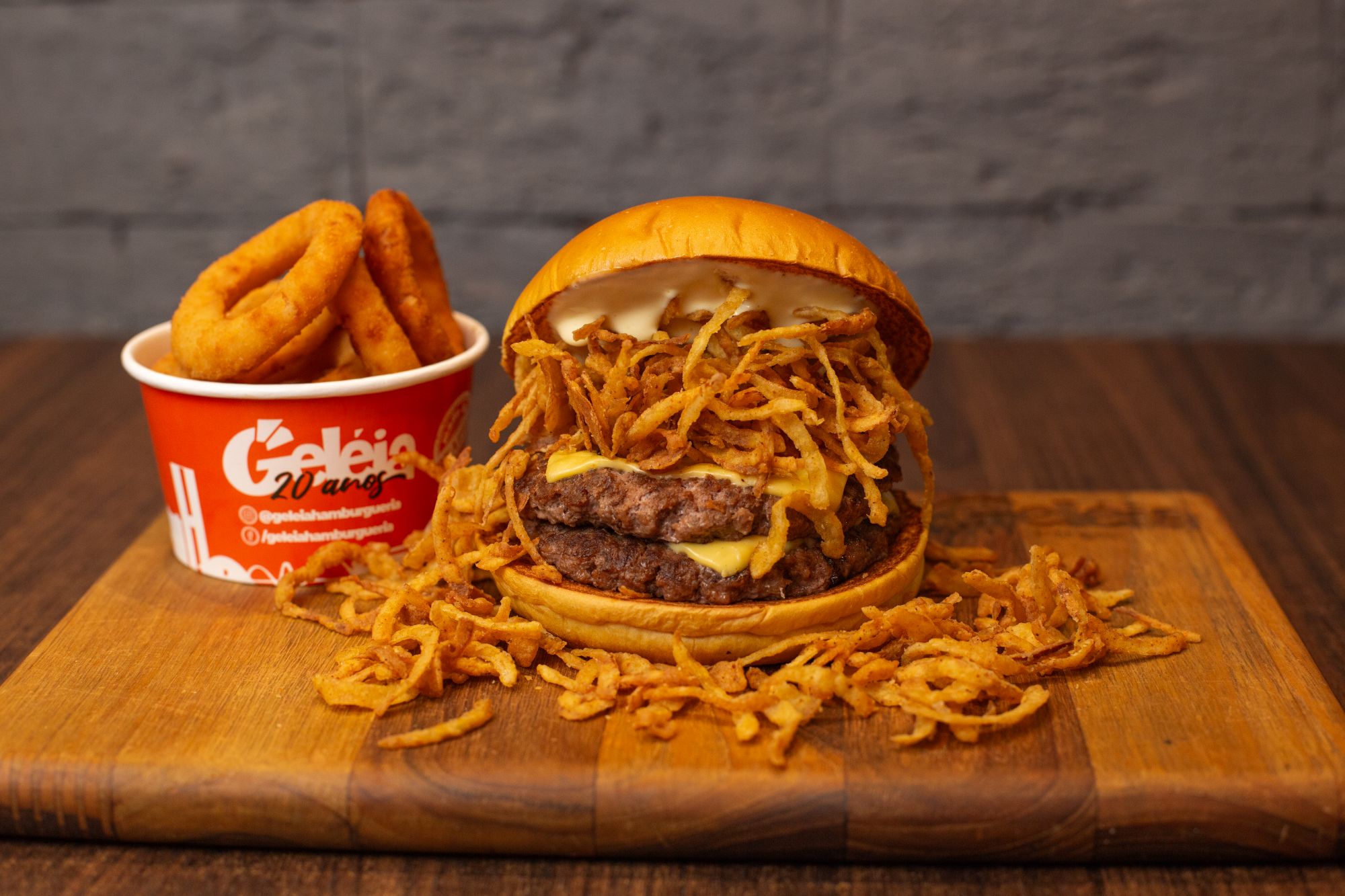 Já o Geléia Burger (R$39) reforça a identidade da casa ao apostar em um clássico robusto e indulgente. A receita traz três smash burgers preparados com o mesmo blend de fraldinha e costela (100g cada), acompanhados de queijo prato, bacon crocante, maionese especial da casa e pão brioche tostado na chapa. É uma opção que conversa diretamente com o clima do Dia do Churrasco, valorizando o sabor da carne e a suculência em cada camada.
