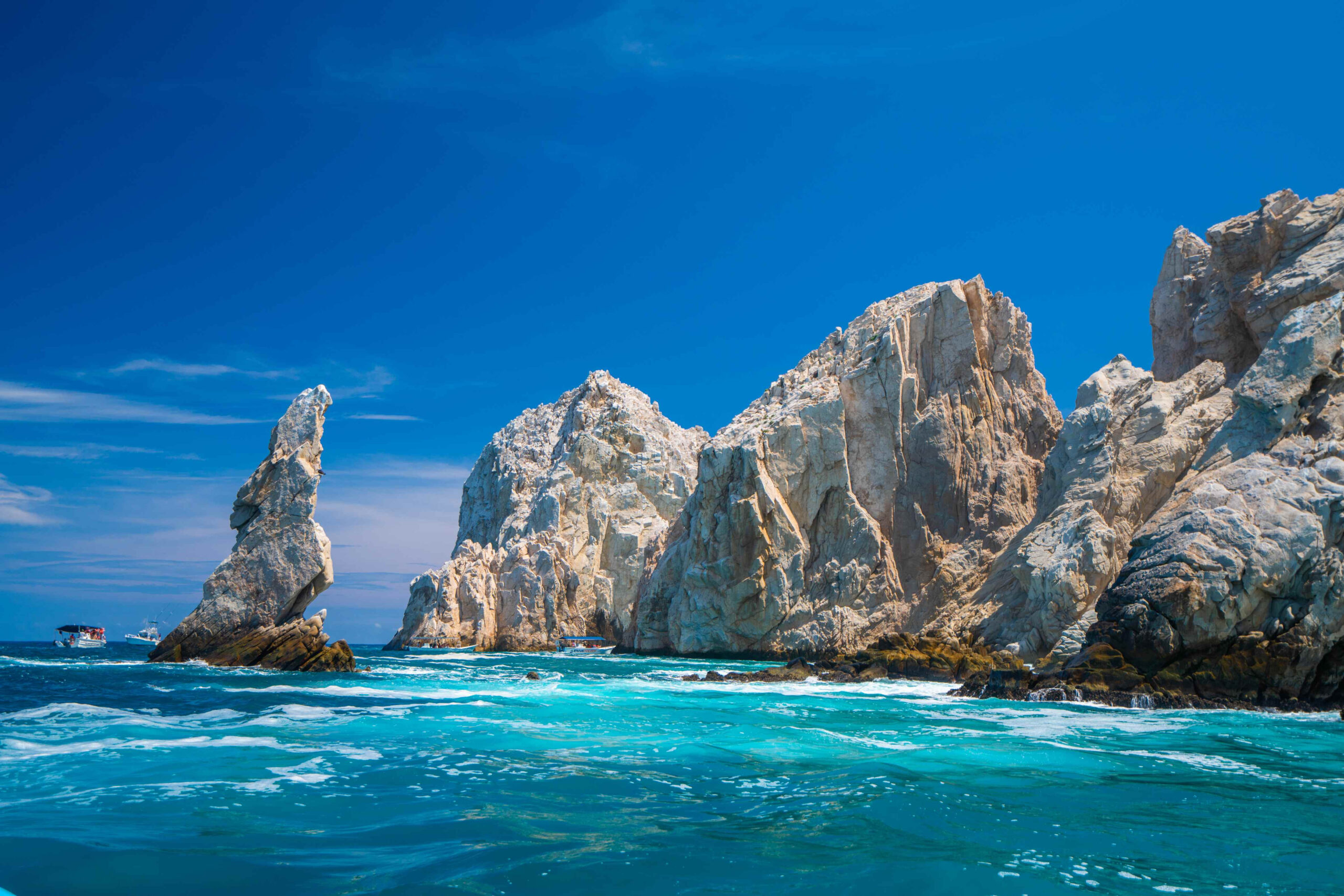 O passeio de barco até El Arco é uma experiência imperdível, especialmente durante a temporada de avistamento de baleias-jubarte, que vai de dezembro a abril. Nessas excursões, é possível observar golfinhos e orcas, além de aproveitar a gastronomia local e mergulhar nas águas mornas do Mar de Cortés para praticar snorkel e stand up paddle.