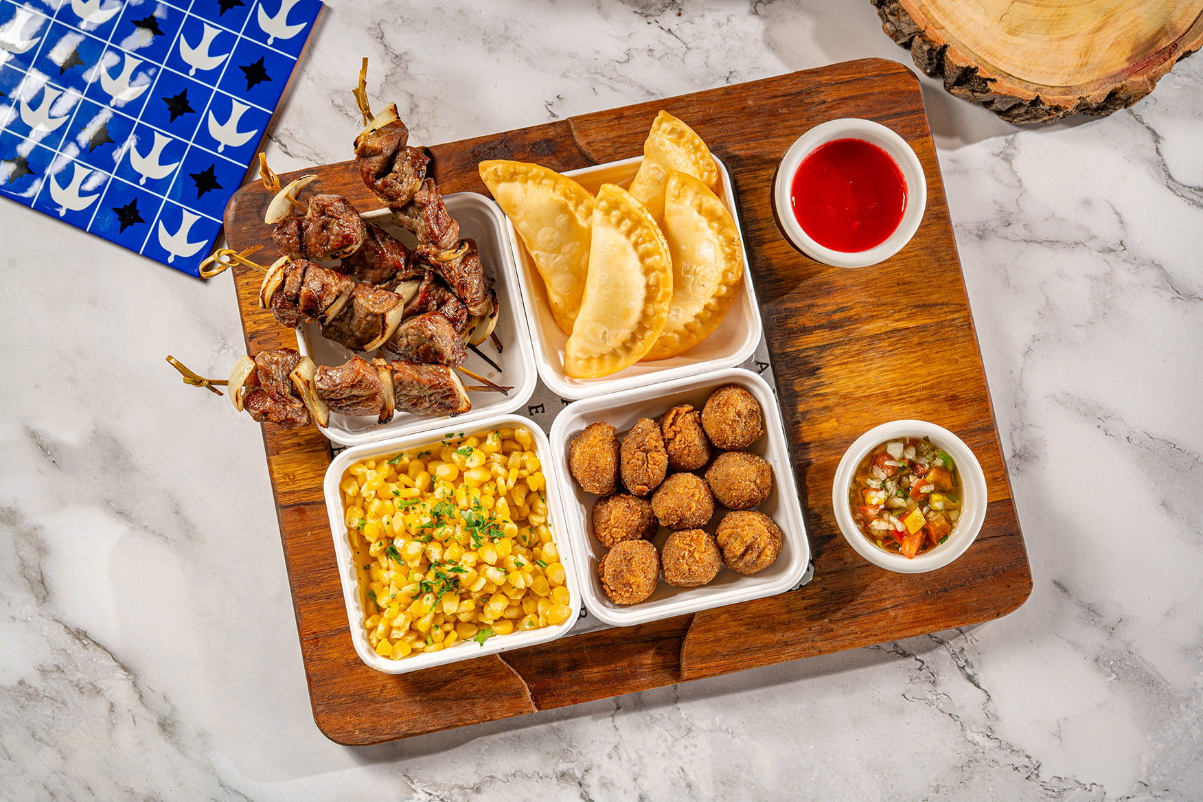 No Gran Bier, “Cobogó” é um mix de petiscos: pasteis de queijo, mini espetinhos de carne, bolinhos de costela, milho na manteiga, vinagrete e geleia de pimenta. Serve de duas a três pessoas. R$ 68,00. Já “Três Poderes” é a opção oferecida pelo Fausto & Manoel. Ela apresenta três unidades de linguiça do Cerrado, com farofa de caju com castanha e cebola e molho reduzido de balsâmico com melado. R$ 49,90.